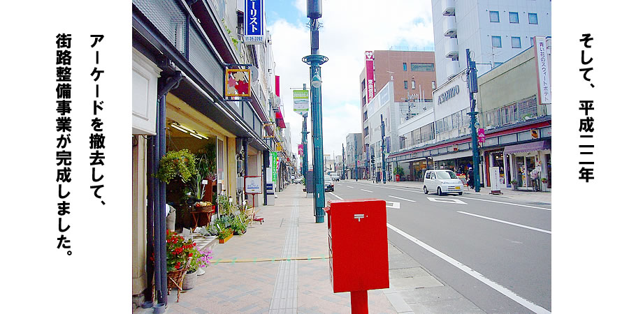 平成19年度に行った老朽化によるアーケード撤去の工事を皮切りに進めて参りました街路整備事業は、平成22年8月末日をもちまして完了いたしました。工事期間中は近隣及び来街者の皆様へご迷惑をおかけしましたことをお詫びすると共に多大なるご協力を頂きましたことに大変感謝申し上げます。中土手町は皆様への感謝の気持ちを忘れずに、これからも弘前市の中心商店街としての役割を果たすべく邁進していきたいと思っておりますので、今後共温かく見守っていただけますよう、よろしくお願い申し上げます。