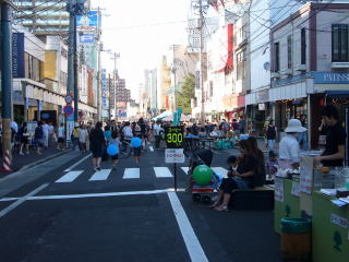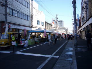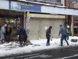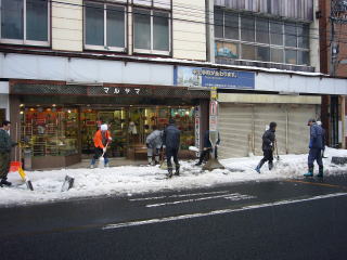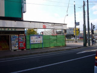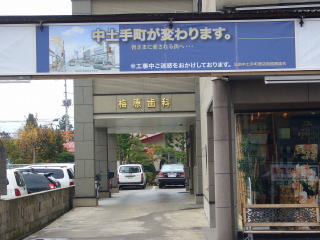 アーケード解体後から統一庇(ひさし)設置までの間、シートで養生しました。