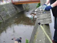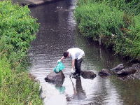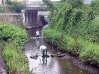 | ≪夏季河川清掃活動≫ 2006、7、23 毎年春と夏の年2回実施している河川清掃。 今回は7名の参加者で行われました。 小枝、ビニール等のほか、自転車2台、お財布、カード、他町会の区域も手伝って自転車1台を引き上げました。 (お財布等は交番へ届けたので、ちゃんと持ち主へ返るといいな。) あいにくの小雨模様のなかで行われた河川清掃でしたが、終わりごろには清掃した後をカモさん親子がスイスイ泳いでいる光景が見られ、気持ちよく終えることができました。 ※河川清掃美化運動/弘前市のイベントの一つとして毎年春と夏の年2回行なわれているこの河川清掃は多くの市民が参加して河川環境の美化に大きな成果を上げています。 |