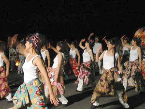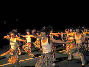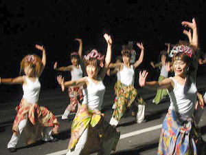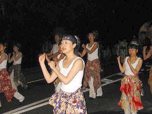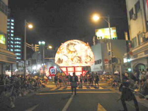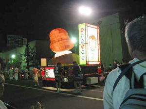 奇しくも昨年と同じく夕方に雨が!昨年もすでに待機場所にスタンバイしているねぷたに容赦なく雨が降りましたが、今年も同じくポツリポツリ。そして出発するころには止むという…梅雨が明けきらない不安なお天気の中、午後6時40分からのセレモニーで幕を明け弘前ねぷたまつりはスタートしました。待ちに待った土手町のねぷたは午後8時30分頃出発しました。今年の土手町ねぷたの特記するところは「前ねぷた」と「AOMORI花嵐桜組」(!)。弘前市出身のアーティストで今まさに展覧会開催中の奈良美智氏のあのいじらしい顔の女の子が前ねぷたとなって登場!なんともいえないかわいさです。そして!よさこいチームで数々の功績を積んでいる弘前の誇りともいえる「花嵐桜組」が土手町ねぷたとコラボレーション☆勇壮なねぷたとパワー溢れる演舞はかなり見ごたえ満載です。実際、沿道からはたくさんの歓声と拍手を頂いてました。どうもありがとうございます。次に花嵐桜組が登場するのは4日の予定。どうぞお楽しみに!!