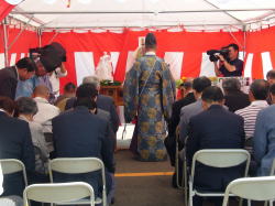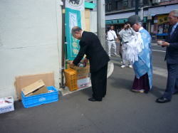 予てより、中土手町商店街では街路整備事業を進めてきましたが、この度、≪統一ひさし並びに歩道照明設置工事≫を行うこととなり、その工事の安全祈願と中土手町の将来の発展を願い、起工式を行いました。 ●日 時 平成21年8月26日(水) 午前10時30分〜 ●場 所 旧奥太履物店前